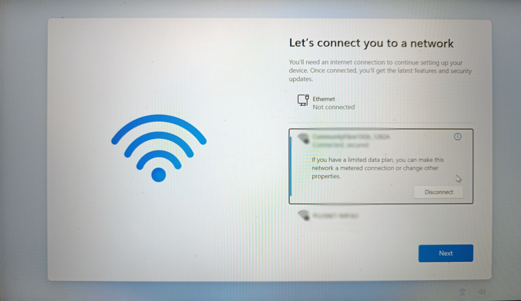 - Wi-Fi: Select network, enter password (minimal interaction)