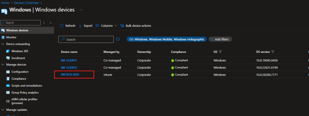 In my previous guide, I showed you how to register devices in Windows Autopilot using PowerShell, CSV import, and OEM direct registration methods. For this guide, I’ve already registered my test device, so we can jump straight into configuring the self-deploying profile.
