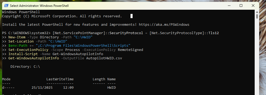 Get-WindowsAutopilotInfo -OutputFile AutopilotHWID.csv