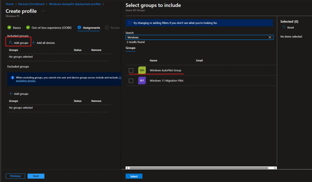 - Select “Yes” if all targeted devices should become Autopilot-managed