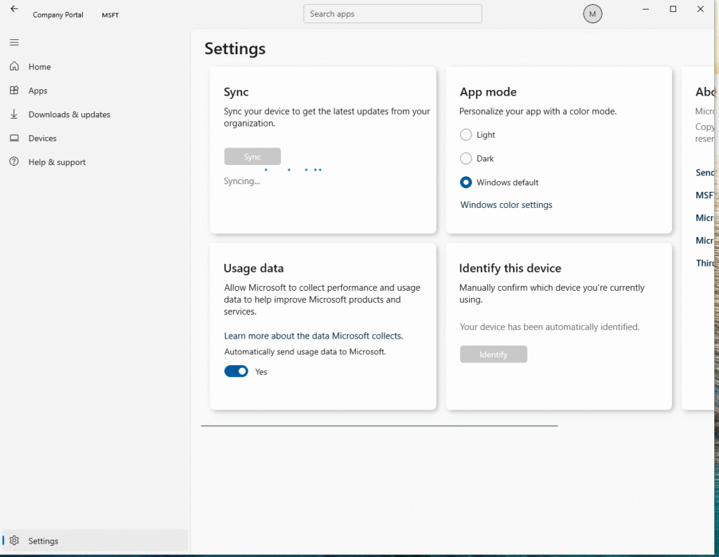 On the client machine, I opened the Company Portal app.