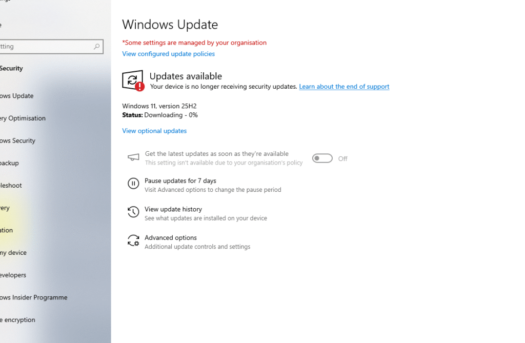 - Windows 11, version 25H2 is showing as available