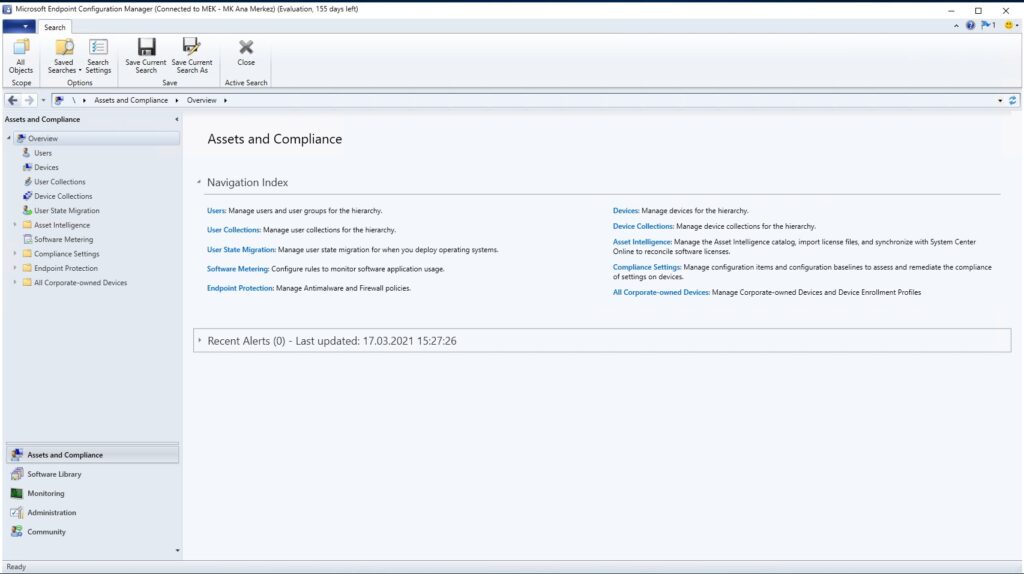Merhabalar, bu yazımda kurulumunu tamamladığım MECM’in konsolunu kısaca tanıtıp ardından Configuration Manager versiyonunun güncellemesinin nasıl yapılacağından bahsedeceğim.MECM konsolunu açıp ilk ekranla başlıyorum.