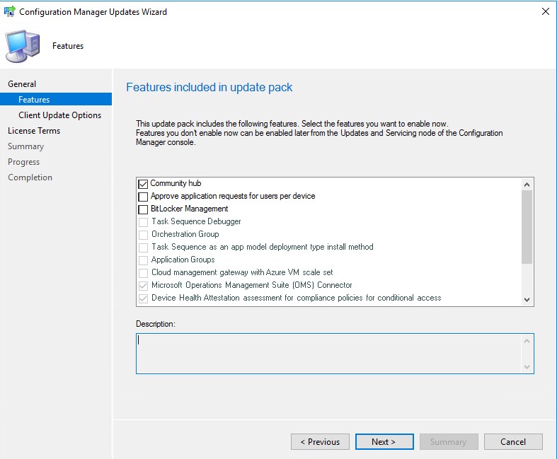 Bu adımda güncellemeyle birlikte eklemek istediğimiz bir özellik varsa seçip yükleme işlemini yapabiliyoruz. Bu özellikleri ayrıca daha sonra Feautres alt kırılımından da yapabiliyoruz.
