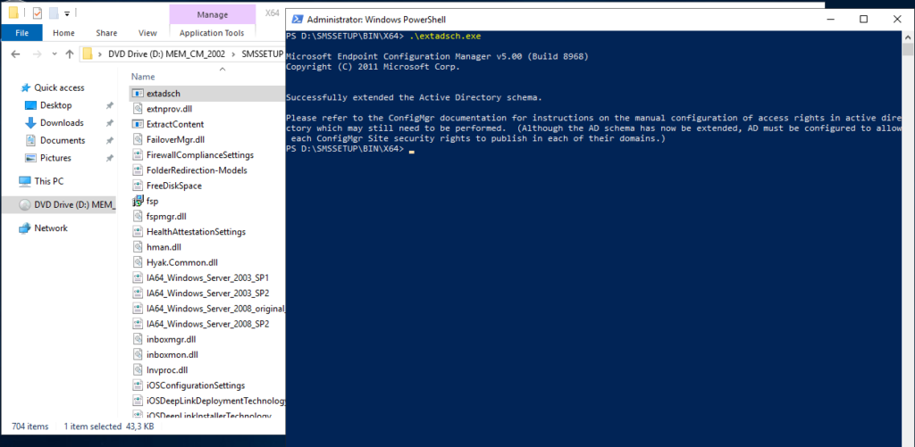 Son olarak MECM kurulum dosyaları içinde bulunan ‘extadsch.exe ‘ yi çalıştırarak şema genişletme işlemlerini tamamlayacağız. Aşağıda ki link üzerinden MECM i ISO olarak indirebilirsiniz.