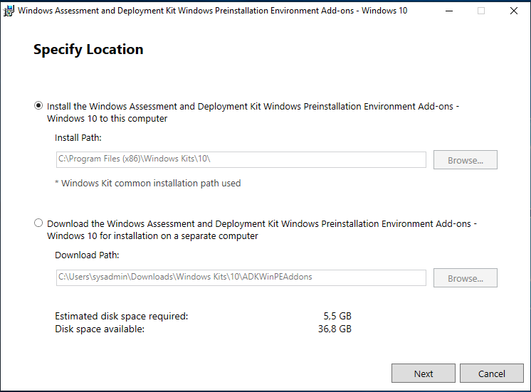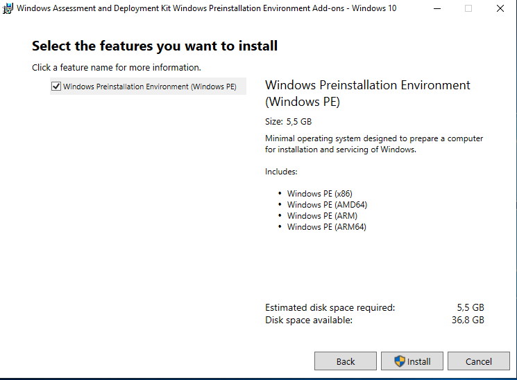 Bu adımda yüklemesini yaptığımız ADK için Windows Preinstallation Enviroment (Windows PE) eklentisini yükleyeceğiz.
