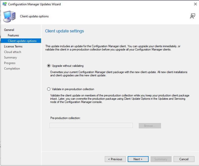 Select the client upgrade option that best fits your environment and proceed accordingly.