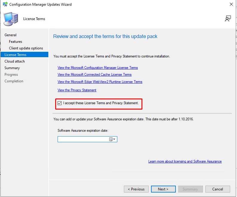 You must accept the license terms in order to proceed with the installation of the new version.