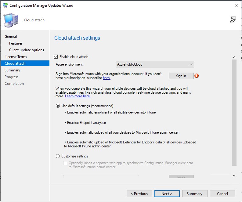 If you are using co-management with an Intune environment, you’ll need to sign in with your tenant credentials here.If not, you can safely next this step.