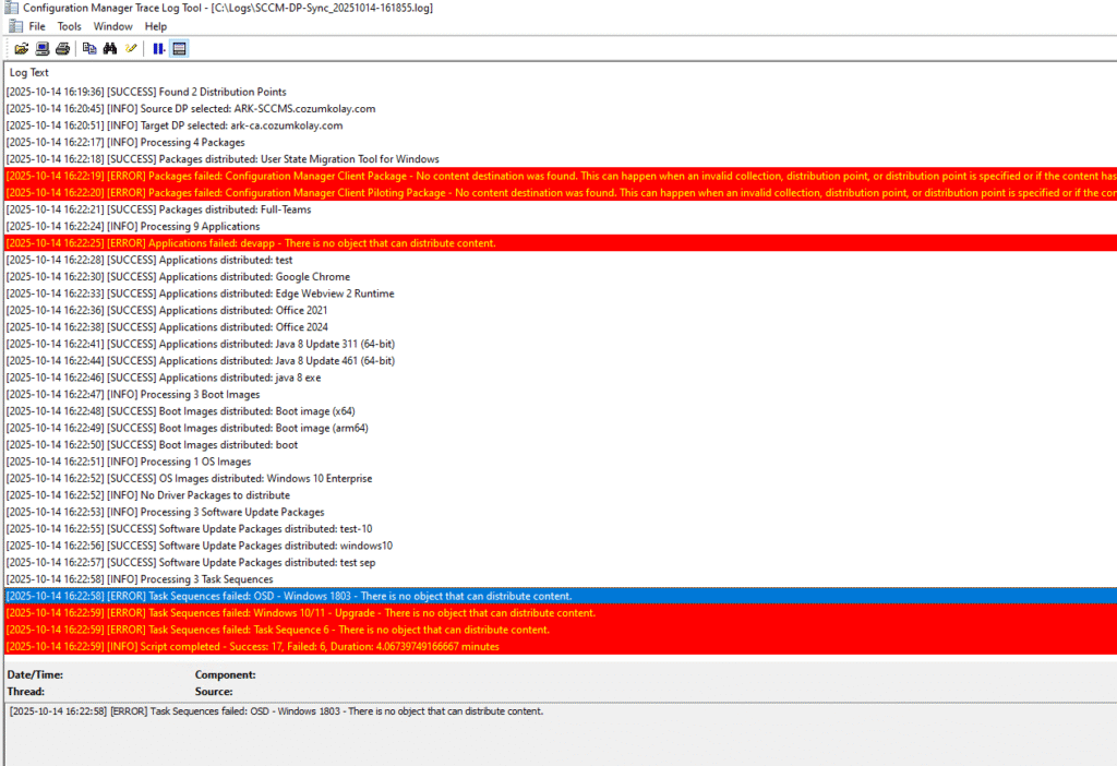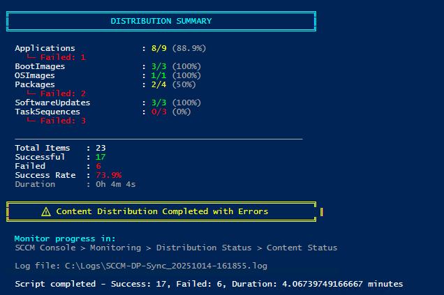 Using this PowerShell script makes copying content between Distribution Points much easier and more reliable. You get a clear view of progress in real time, detailed logs for troubleshooting, and a straightforward way to ensure your new DP has all the content it needs.