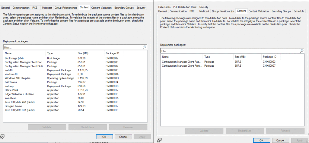- Distributes all content types Applications, Packages, Boot/OS/Driver Images, Updates, and Task Sequences
