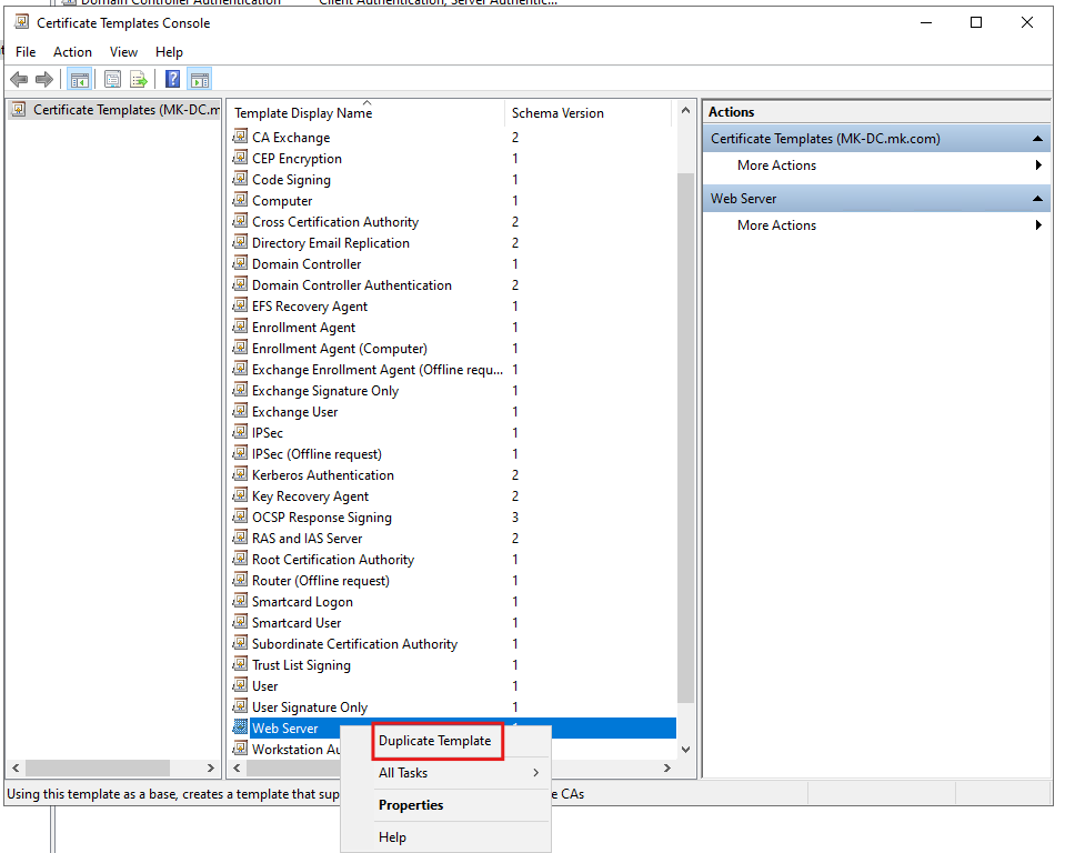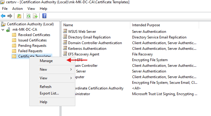 - Go back to the Certificate Templates section in the CA console.