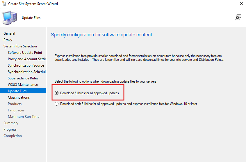 - Download full files for all approved updates