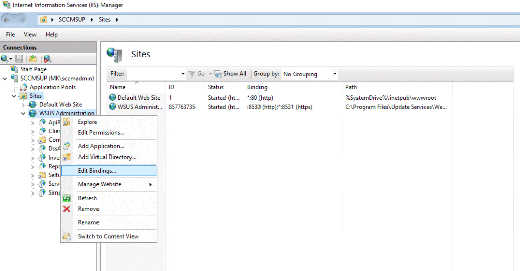 2.2 Configure IIS Bindings for WSUS