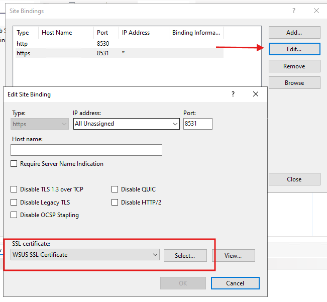- Bind the SSL Certificate to WSUS
